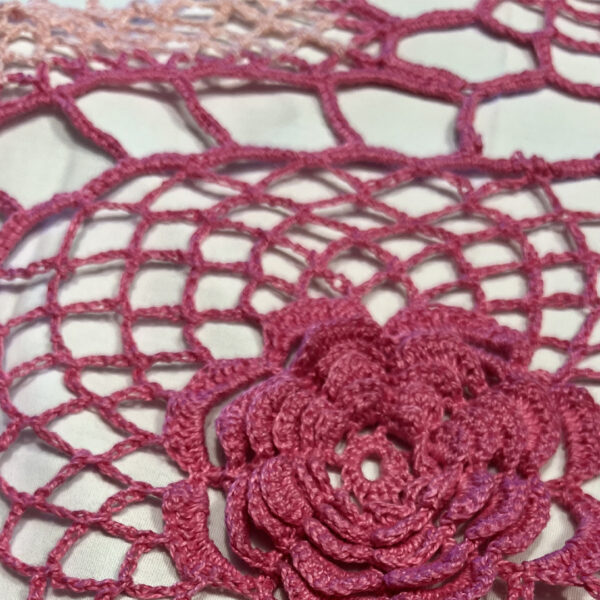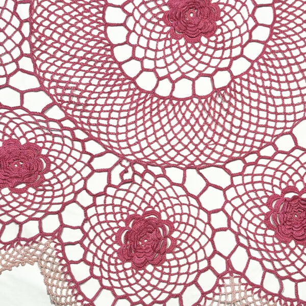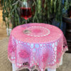 Pink textured rose hand crocheted cotton tablecloth. Ready to ship Size is around 35″.