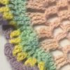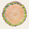 Apricot hand crocheted cotton doily with multi-colored frill for table decoration. Round cloth doilies can be great centerpiece decoration or great place-mats. Ready to ship doily size is about 9″.