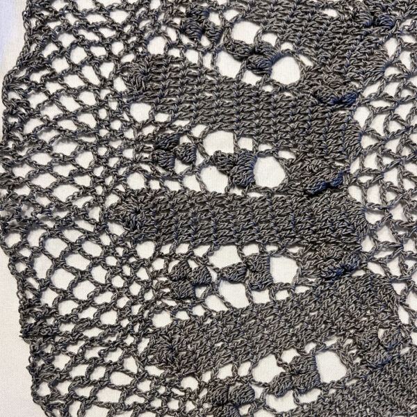 Gray hand crocheted cotton doily for table decoration. Round cloth doilies can be great centerpiece decoration or great place-mats. Ready to ship doily sizes are about 17″.