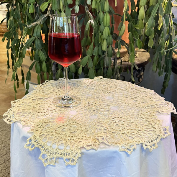 White hand crocheted tablecloth. Ready to ship. Size is around 20″.