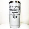 “To Quote Dungeon Master’s Guide, Chapter 9, Page 263, Paragraph 5, Line 9, NO” laser etched on 20oz stainless steel double-walled insulated tumbler.