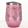 Grape vine pattern laser etched on 12oz stainless steel double-walled insulated tumbler.